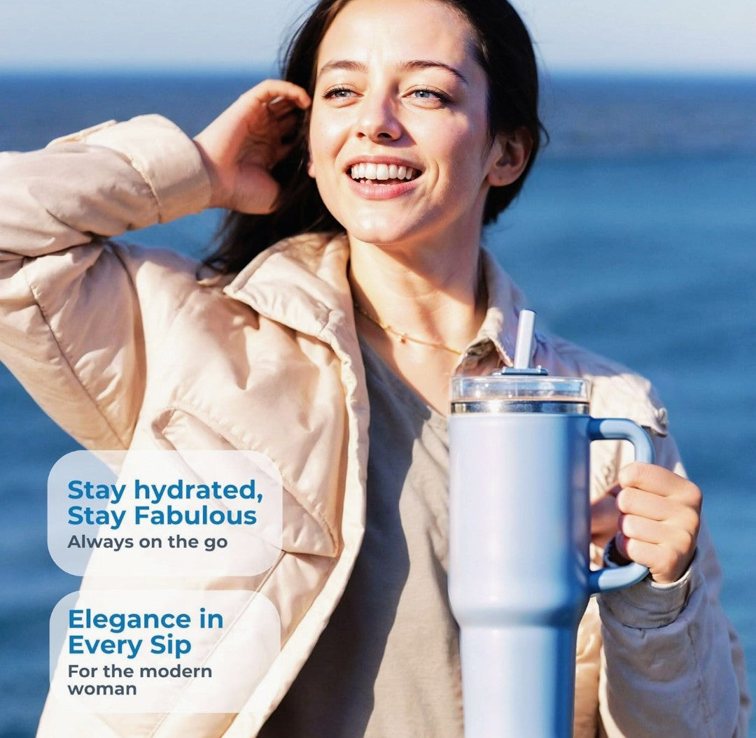 Large Capacity Stainless Steel Travel Tumbler with Handle & Straw – 1200ml